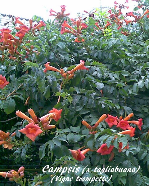 Le genre Campsis (Vigne trompette) est composé de 2 espèces végétales (et une espèce hybride) dicotylédones appartenant à la famille des Bignoniacées (tribu des Técomées), l'une, Campsis grandiflora originaire de Chine, l'autre, Campsis radicans originaire du sud-est des Etats-Unis.