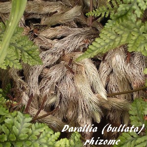 rhizomes très velus rampant à la surface du sol et évoquant des pattes d'animaux, ce qui leur vaut des noms vernaculaires tels que "Fougère patte de lapin" ou "Fougère pied d'écureuil".