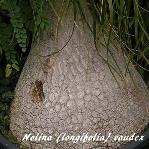 Souvent confondues avec les beaucarnéas, les nolines sont établies sur un caudex sphérique ressemblant à un bulbe aérien (rarement souterrain) surmonté d'une rosette de longues feuilles linéaires bien connues des fleuristes pour être largement utilisées pour la touche graphique apportée aux bouquets et compositions (feuillage appelé beargrass "Herbe des ours").