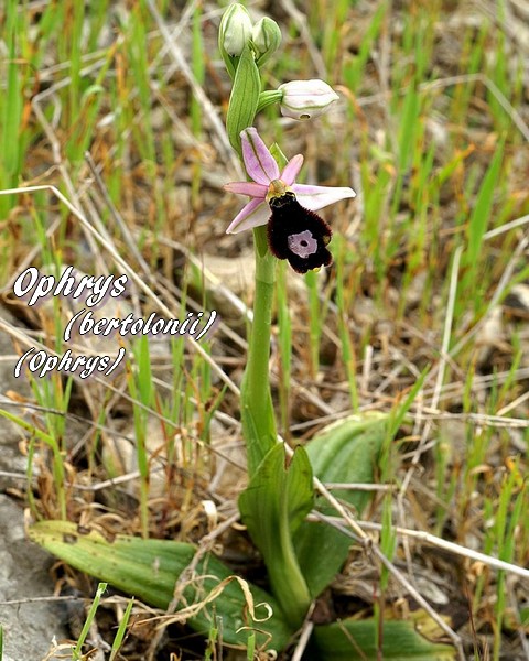 La particularité des espèces du genre Ophrys réside dans le fait que ce labelle reproduit la forme et la couleur de l'insecte pollinisateur (abeilles sauvages majoritairement). En même temps, la fleur émet des substances qui évoquent les phéromones sexuelles de leur femelle. En essayant de copuler de fleur en fleur, le mâle les pollinise.
