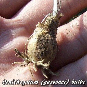 Les ornithogales sont établis sur des bulbes rappelant ceux des jacinthes, parfois de petite taille, qui émettent, outre une tige florale aphylle, une rosette de feuilles radicales linéaires peu nombreuses.