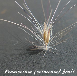 Le nom de ce genre, du latin "penna (plume) et "seta" (poil), fait allusion à ses épis chevelus.