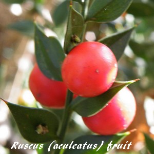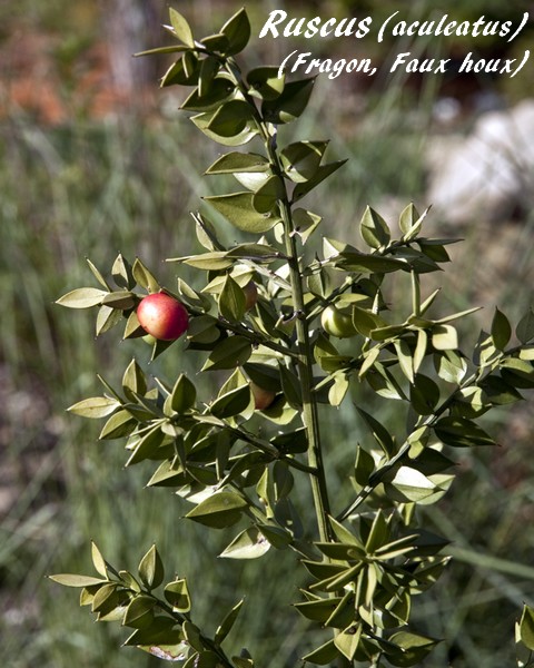 Le genre Ruscus (Fragon, Faux houx) compte 7 espèces végétales monocotylédones appartenant à la famille des Asparagacées (sous-famille des Nolinoïdées) originaires d'Europe, de la côte atlantique et du nord-ouest de l'Afrique jusqu'au Caucase.