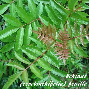 Le nom de ce genre vient du grec schinos qui désigne le "Lentisque" car il produit un suc résineux semblable.