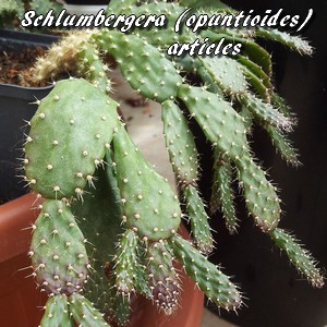 Les schlumbergères n'ont pas de feuilles : leurs tiges plus ou moins ramifiées sont constituées de segments plus ou moins aplatis appelés articles (équivalents des