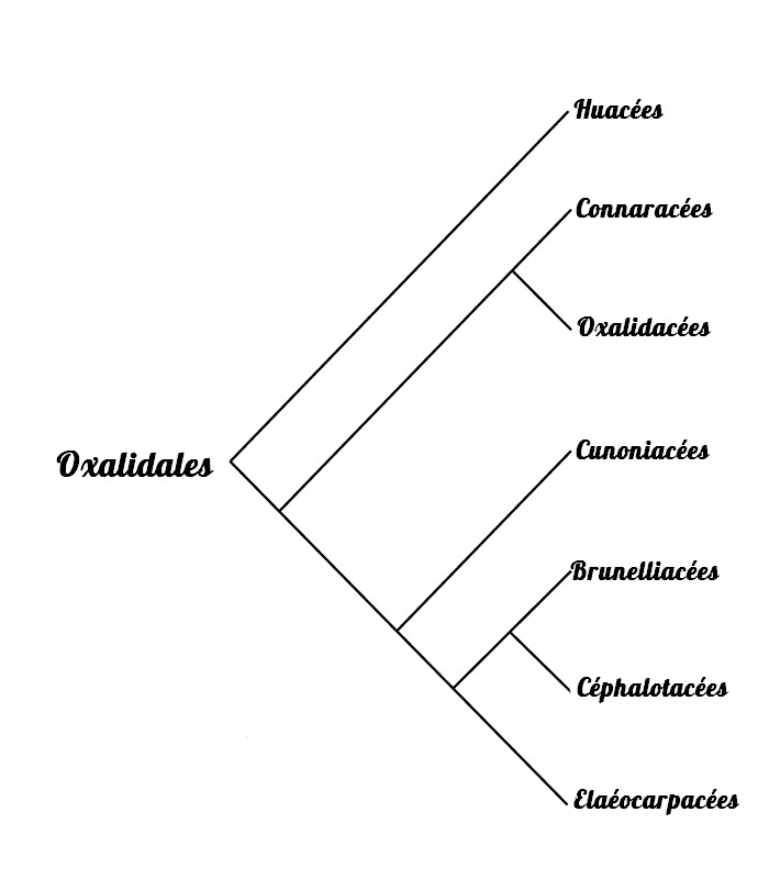 A ce jour, il regroupe 7 familles: les Brunelliacées, les Céphalotacées, les Connaracées, les Cunoniacées, les Elaéocarpacées, les Huacées et les Oxalidacées. Dans la classification de Cronquist (1981), cet ordre n'existait pas. Les familles qui le composent aujourd'hui étaient dispatchées dans plusieurs ordres différents: Les Oxalidacées dans les Geraniales, les Elaéocarpacées dans les Malvales et les Polygalales, les autres dans les Rosales.