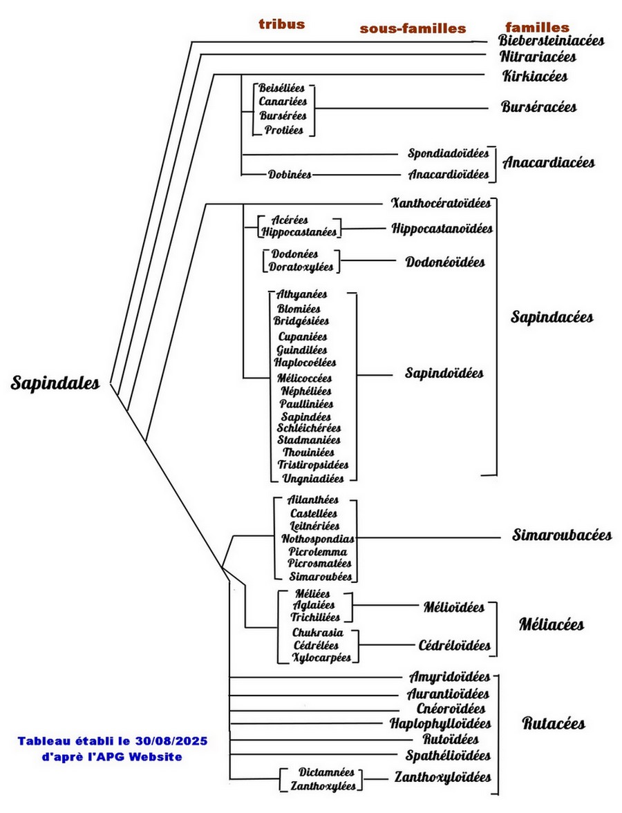 Ne cherchez pas des "sapins" dans l'ordre des Sapindales, son genre type est Sapindus (arbre appelé "Savonnier").